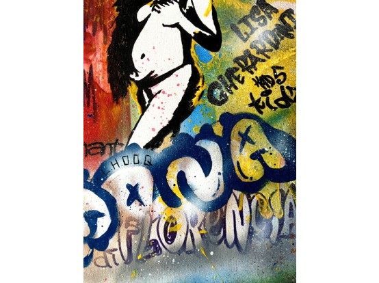 Kleurrijk werk van de Franse kunstenaar Charles Bignon. Acrylverf en spuitverf of canvas en gespannen op een houten frame. Gemaakt in 2018 en een uniek exemplaar.