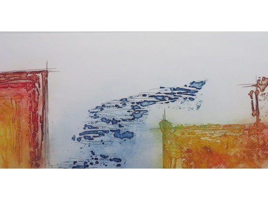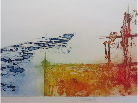 Kleurenets van de Nederlandse kunstenaar Olivier Beijn. De ets is in perfecte staat en nog nooit ingelijst geweest. Formaat afbeelding is 18,5 x 49,5 cm. De ets is genummerd (26 van 30) en ondertekend door de kunstenaar. De ets is al voorzien van een passe-partout, die bij de prijs is inbegrepen.