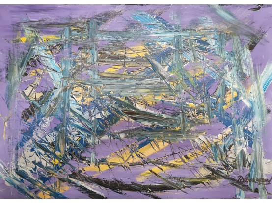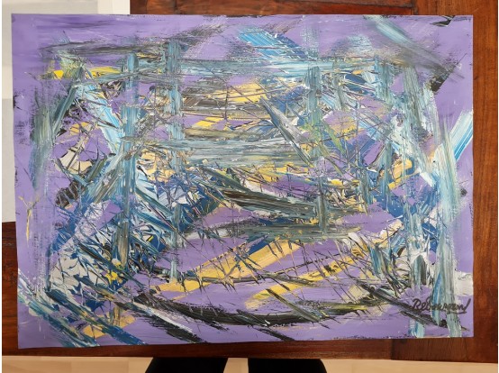 Acrylverf op papier, gesigneerd rechtsonder en op de achterkant. Gemaakt in 2015. Het werk meet 50 x 70 cm en is na inlijsting circa 65 x 85 cm.