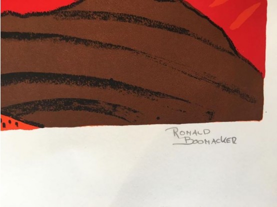 Gesigneerde en genummerde zeefdruk van Ronald Boonacker. Voorzien van een prachtige zwarte lijst. Vanwege de grootte en waarde van dit werk leveren wij het bij u thuis af.