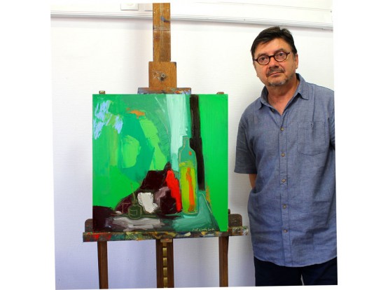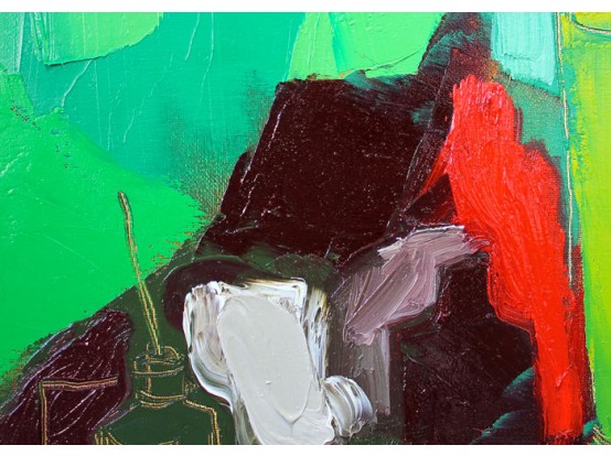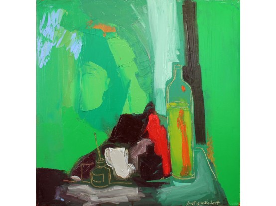 Knalgroen werk van kunstenaar Michel Suret-Canale, geboren in Parijs op 4 maart 1957. Olieverf op canvas, rechtsonder gesigneerd. Kunstwerk komt rechtstreeks uit het atelier van de kunstenaar.