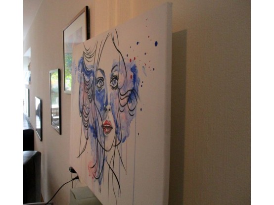Het werk bevat geen lijst en kan zo aan de muur. Maar een zwarte of witte baklijst van ongeveer € 100 laat het doek nog meer spreken. Uiteraard verzorgen wij dat na aankoop graag voor u.