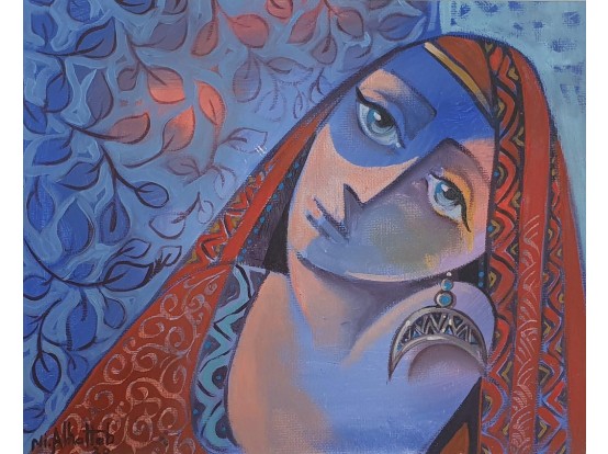 De stijl van Nizar Al Hattab kenmerkt zich door kleurrijke afbeeldingen van vrouwenfiguren in de kleding van zijn thuisland Syrië. In het echt spreken de kleuren nog meer dan op de foto's. Kom zijn doeken zelf bekijken in onze galerie in Gouda.