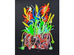 Paul Kostabi staat bekend om het hebben van een zeer relaxte persoonlijkheid; hij kan gelukkig zijn om te schilderen op museum kwaliteit canvas of gewoon op een stukje karton uit de vuilnisbak. Zijn geest leidt hem bij het schilderen en dat zie je in zijn werk. De vrijheid van elke penseelstreek en de plotselinge uitbarsting van verfspatten. Zijn werk kenmerkt zich als kinderachtig onzorgvuldig expressionisme.